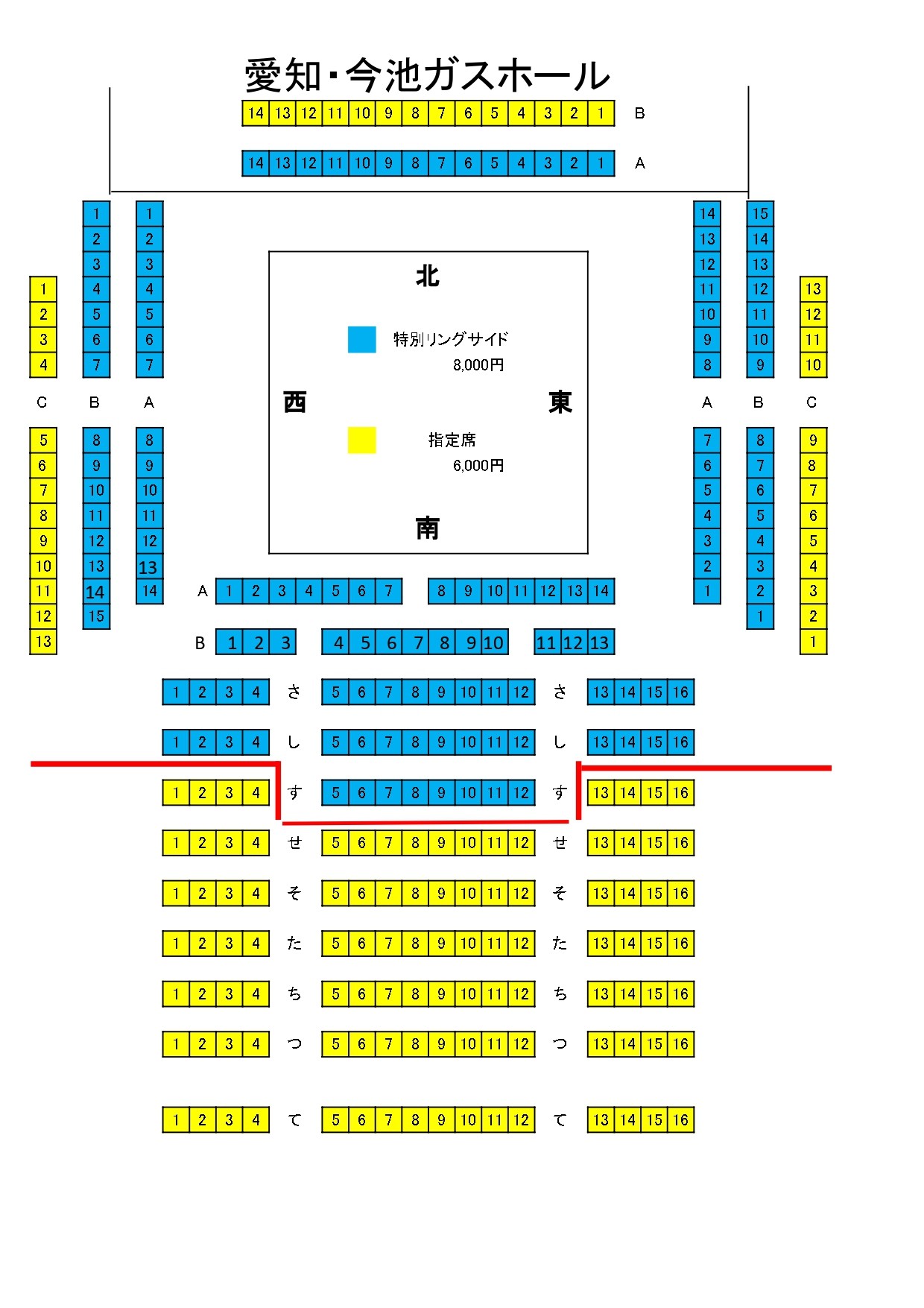 | 特別リングサイド | 8,000円 | 8,500円 |